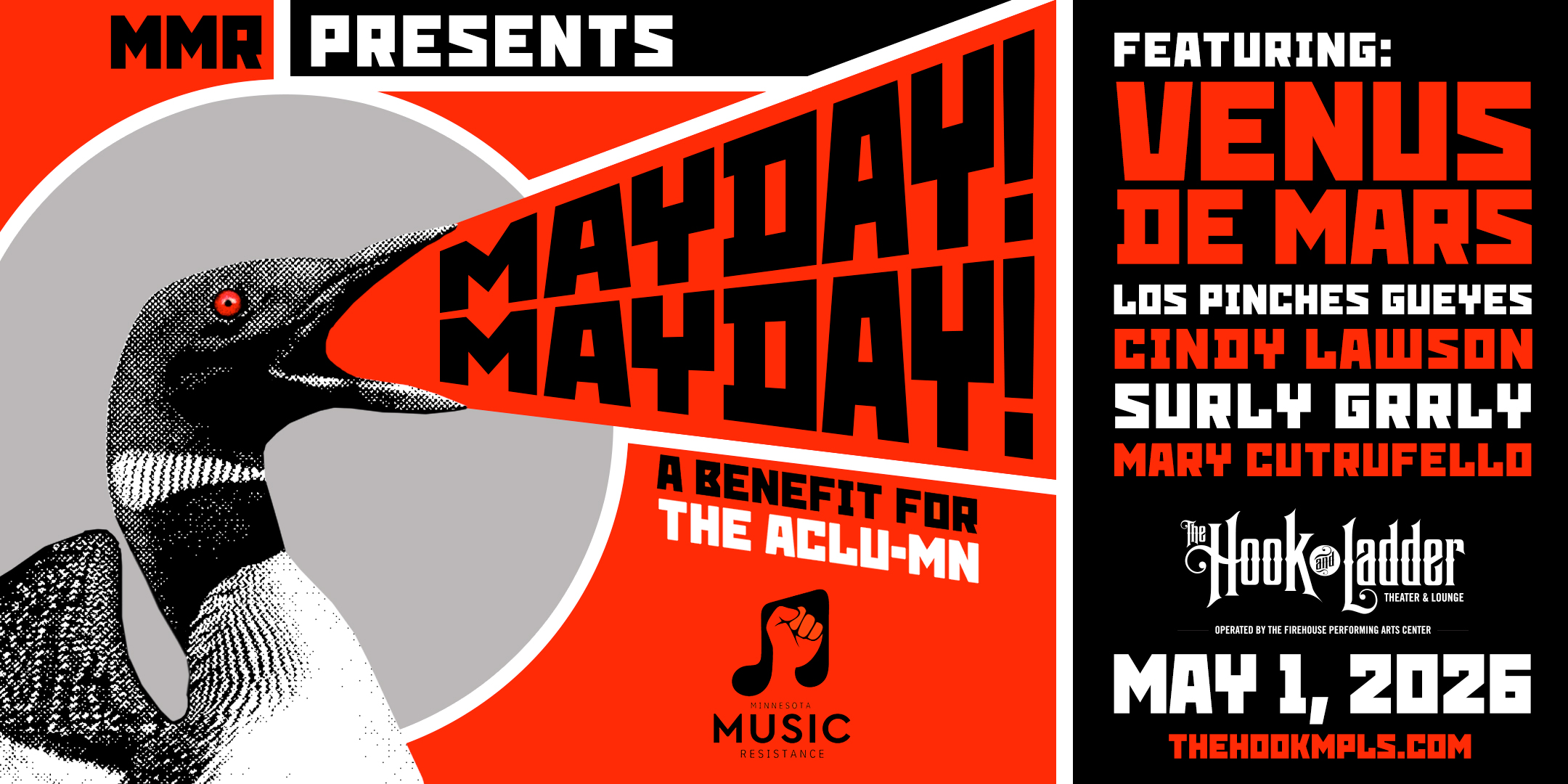 The Minnesota Music Resistance presents our second annual awareness and fundraising event supporting the ACLU-MN: Mayday! Mayday!