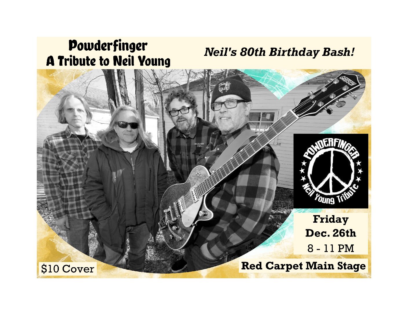Main StageNeil Young’s 80th Birthday Bash!$10 TicketDoors: 7:30 PM Powderfinger is a Neil Young tribute band..