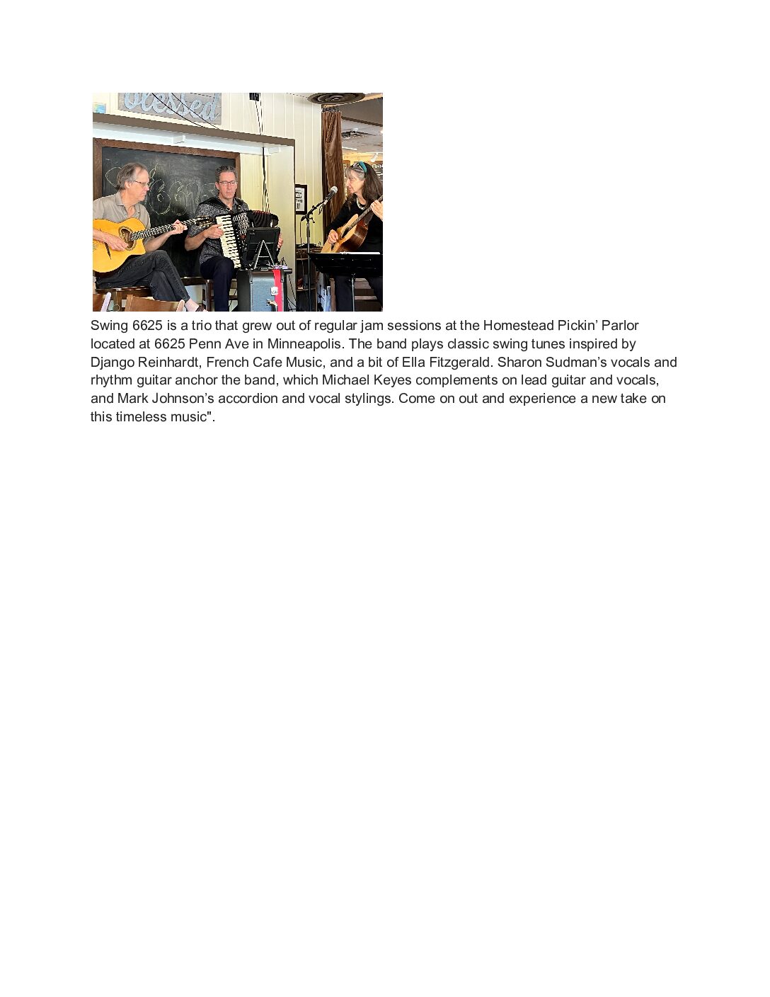The Finnish Bistro 2264 Como Avenue, St. Paul, MN, United StatesJoin us at 6:30 pm for The Bistro Showcase Hosted by Jun Sugiyama Featuring Mariana..